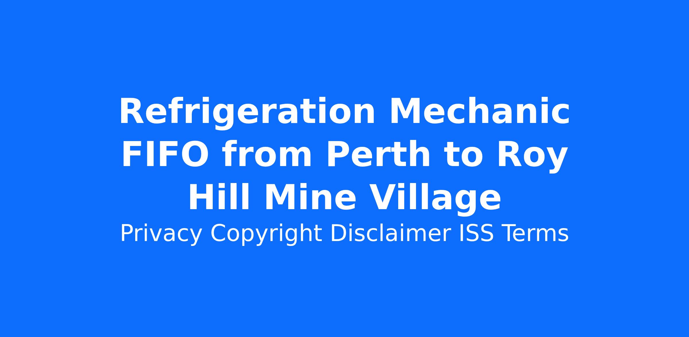 Refrigeration Mechanic FIFO from Perth to Roy Hill Mine Village