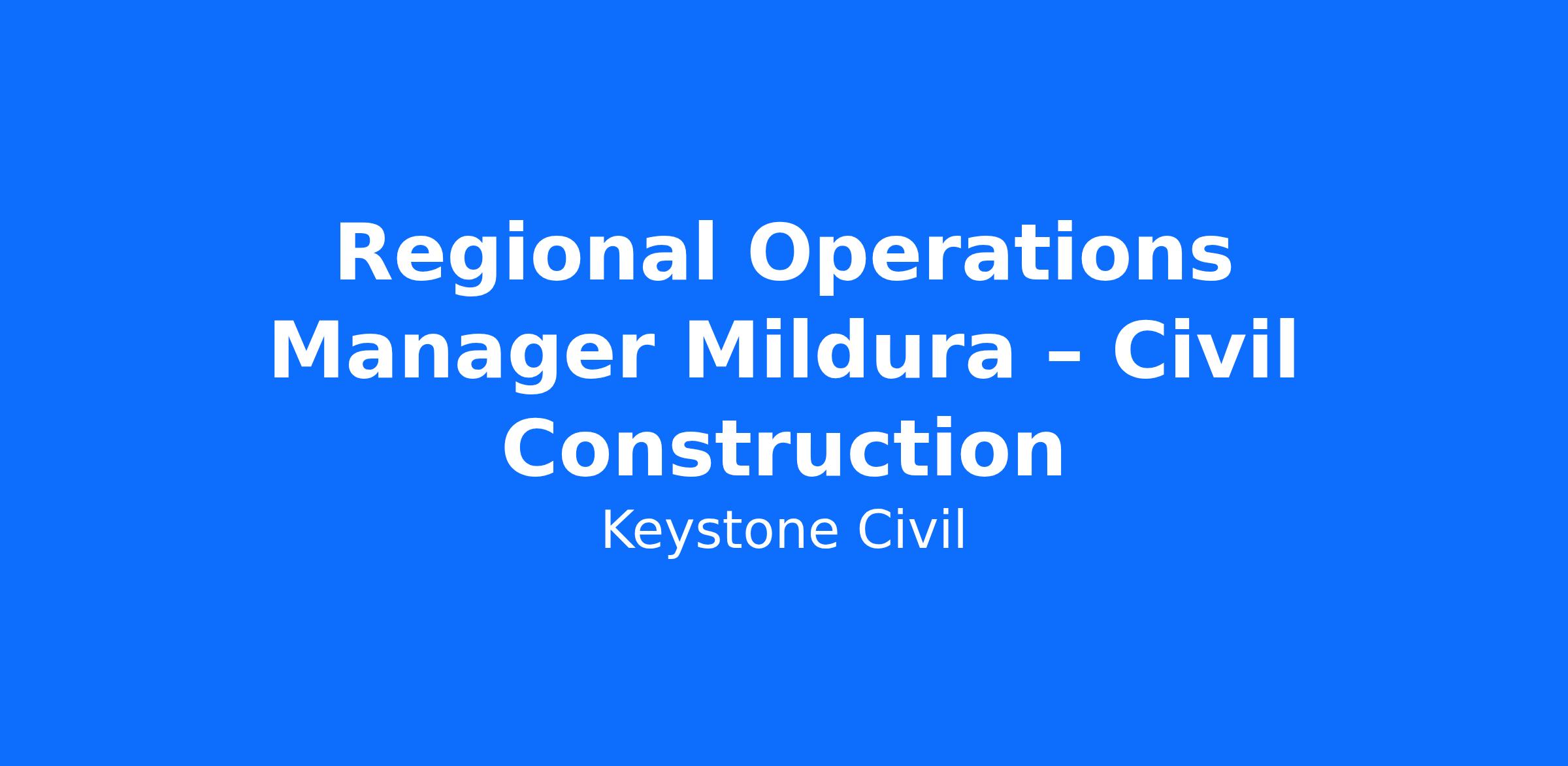 At Keystone Civil, we live by our core values of CAN DO, CONNECTED, and COMMITTED. The ideal candidate will bring strong leadership, commercial acumen, and a proactive, solutions-focused mindset, with a commitment to safety, quality, and team performance. This is a unique opportunity to play a key leadership role, drive regional success, and make a meaningful impact within the Mildura community.
