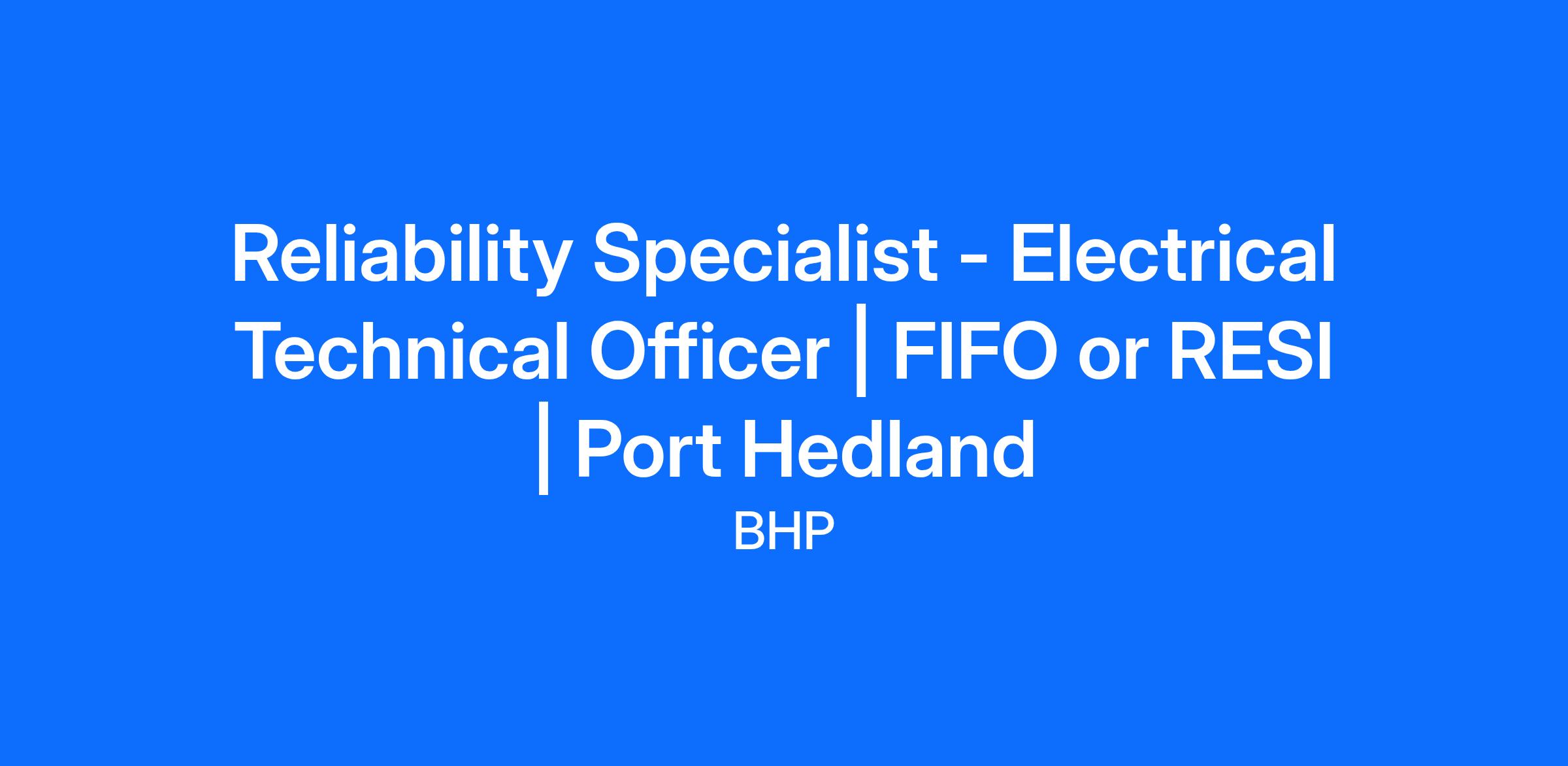 We are seeking a Reliability Specialist, Electrical Technical Officer which is based in Port Hedland on a 8:6 Roster, either FIFO or Residential