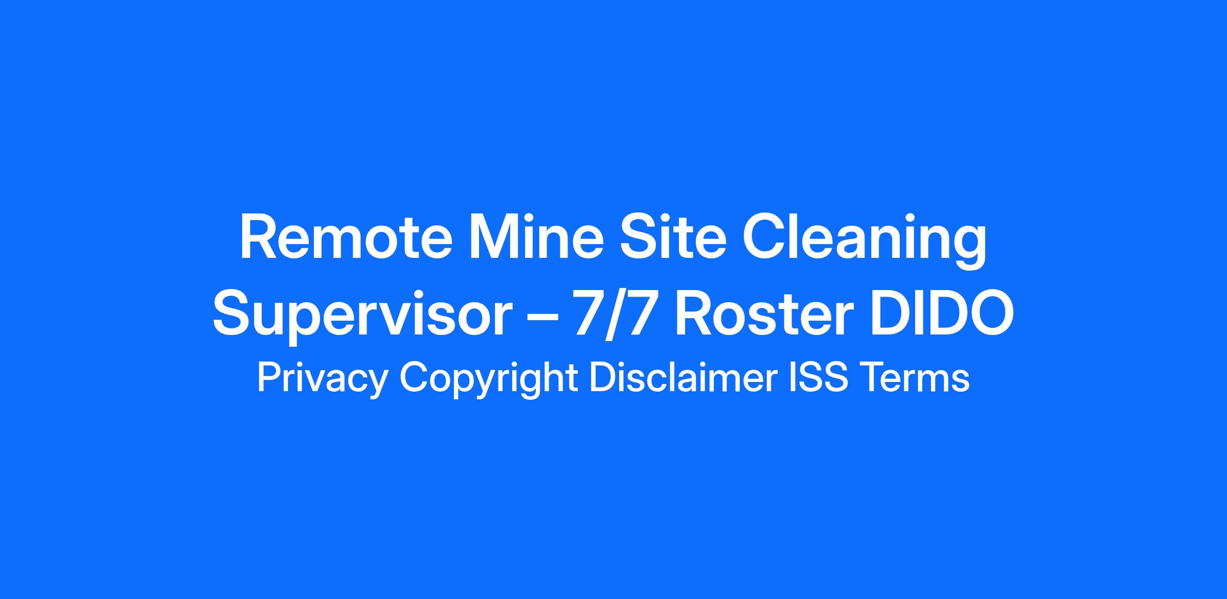 ISS is seeking an experienced DIDO (Drive-In/Drive-Out) Mine Site Cleaning Supervisor to lead cleaning operations at our remote mining village in Central QLD. Working on a 7 days on / 7 days off roster, you will rotate with another Supervisor to ensure seamless site coverage and maintain a strong work–life balance.