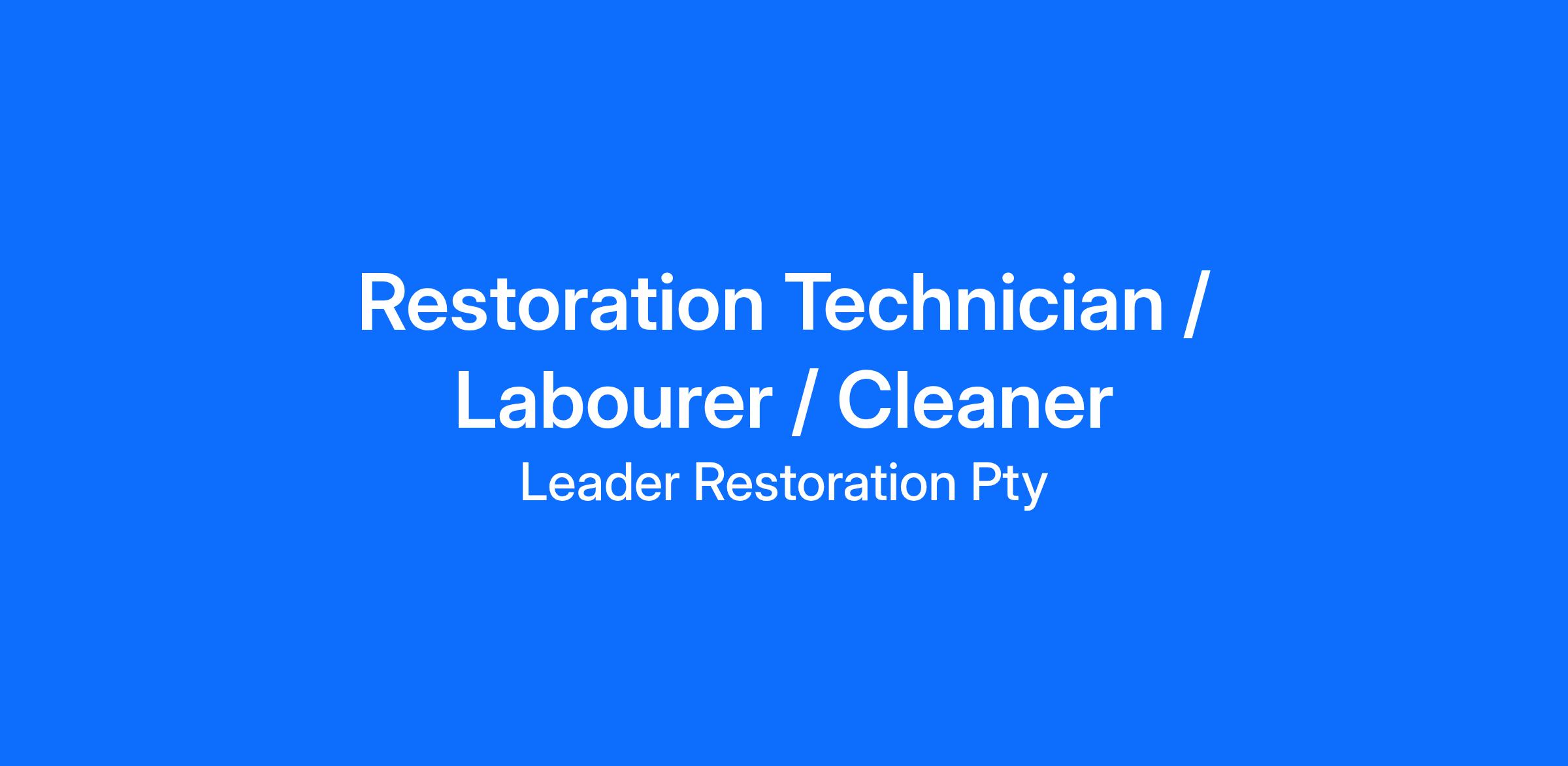 Leader Restoration is a rapidly growing restoration company that has been specialising in insurance repairs for over 20 years. We are seeking a Restoration Technician to join our dynamic team in a permanent full-time role. This is an exciting opportunity for someone who is hardworking, eager to learn, and looking to build a rewarding career in restoration.