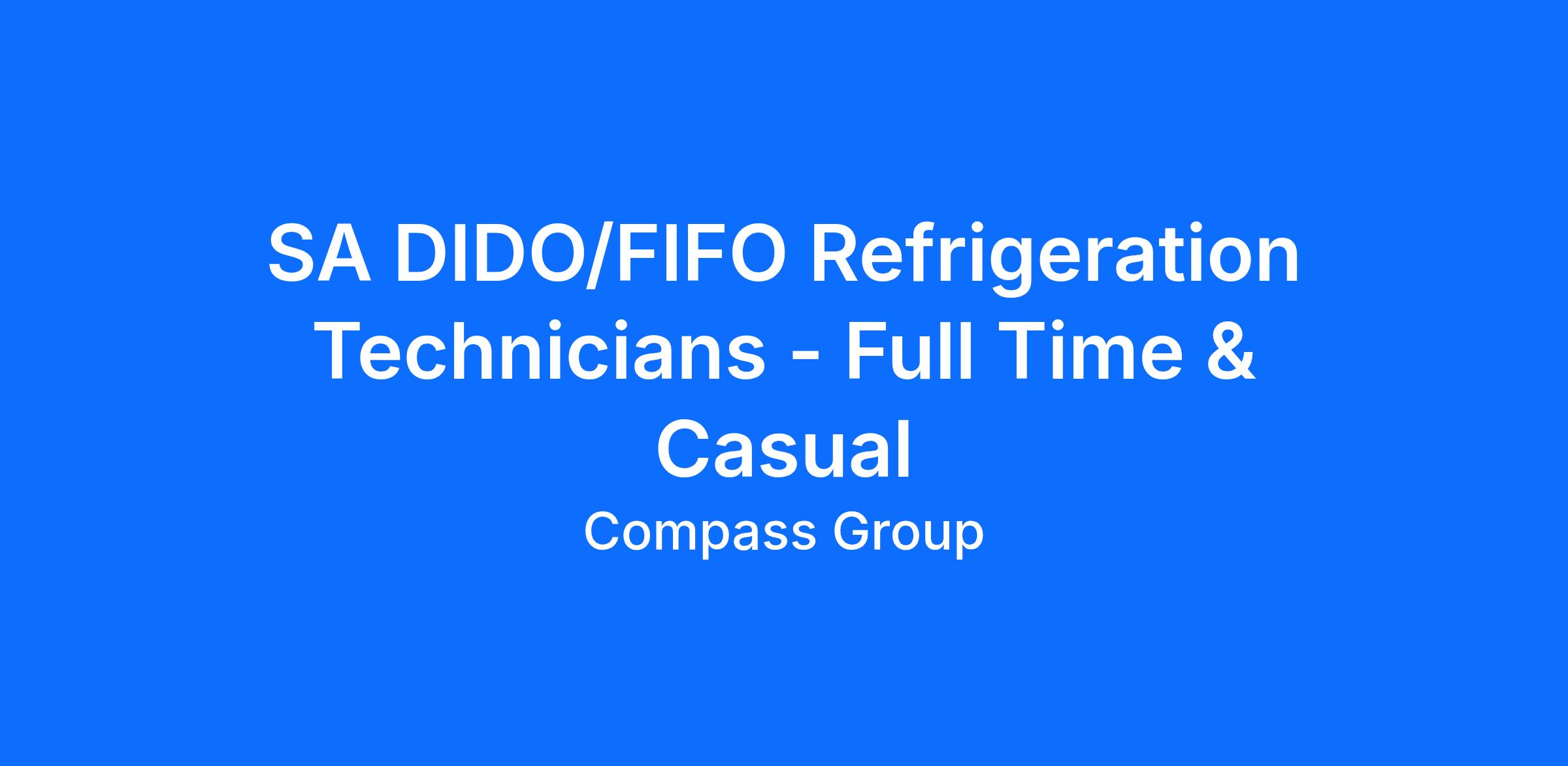 SA DIDO/FIFO Refrigeration Technicians - Full Time & Casual