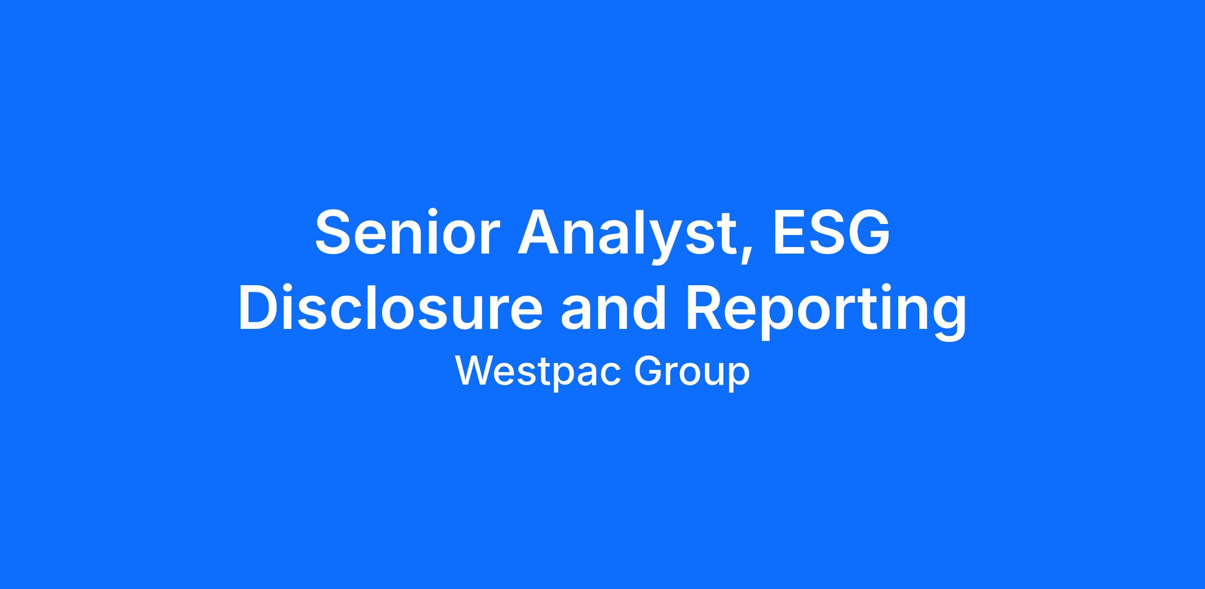 Create your best future and join Westpac as a Senior Analyst, ESG Disclosure and Reporting