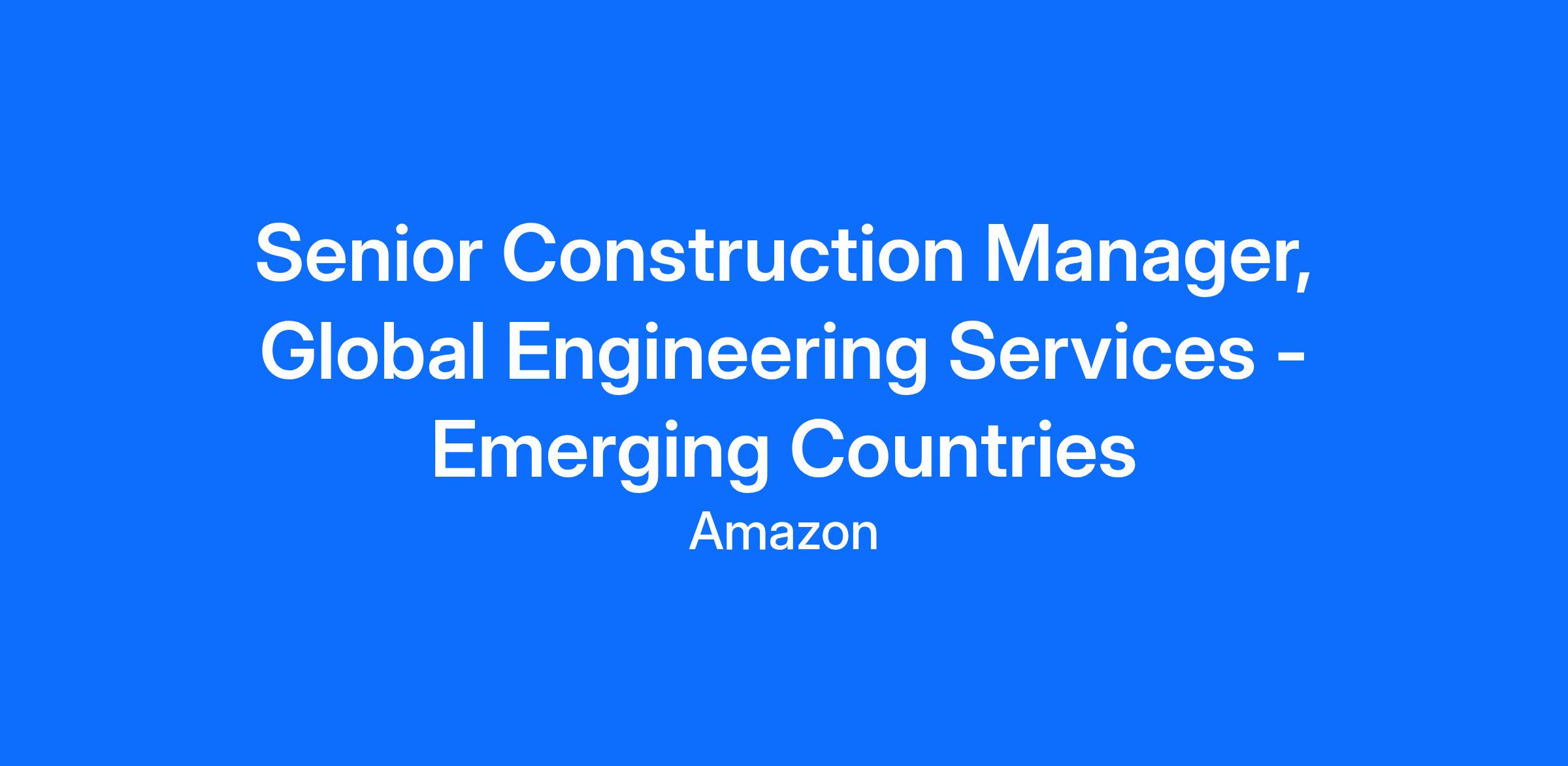 Global Engineering Services - Emerging Countries - Construction team supporting APAC and LATAM is looking for an experienced Construction Manager that will be a key part of the Australian Operations team.