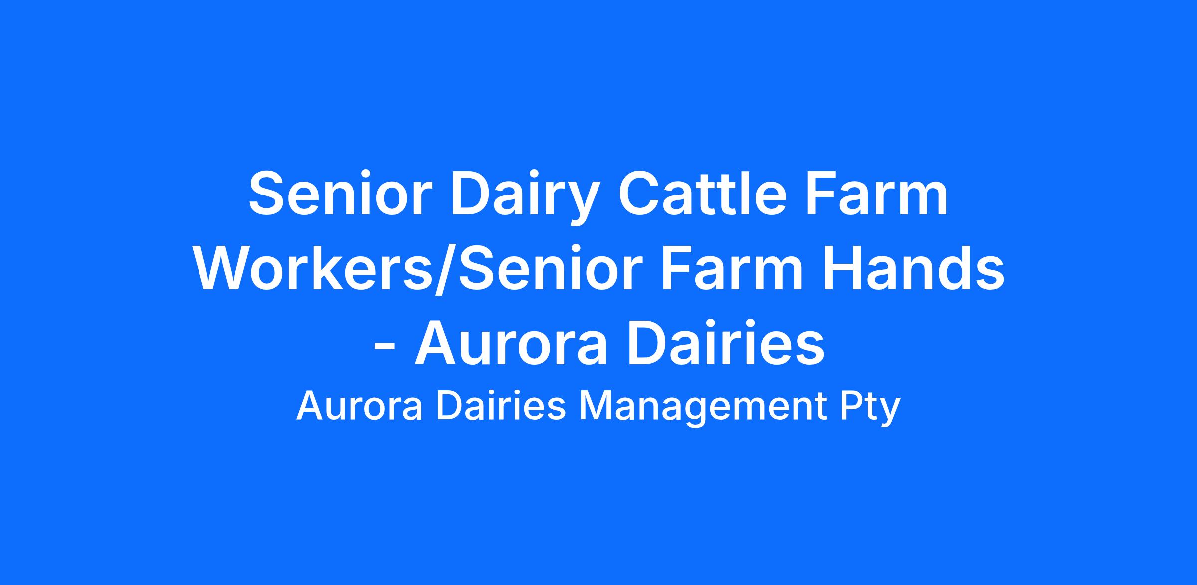 Aurora Dairies are currently seeking multiple Senior Dairy Cattle Farmers - Senior Farm Hands across Victoria, Australia.