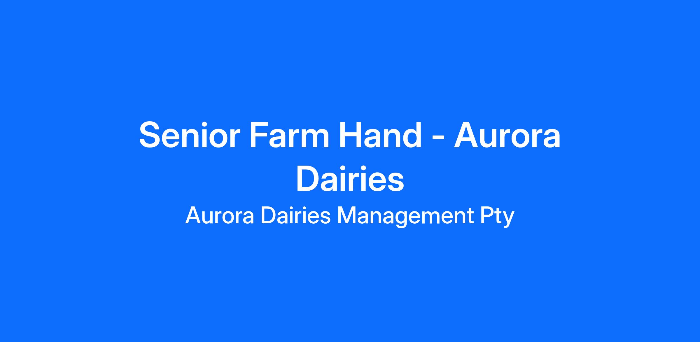 Aurora Dairies are currently seeking a Senior Farm Hand for a dairy farm in Glenfyne, located 30 minutes from Warrnambool in South West Victoria.