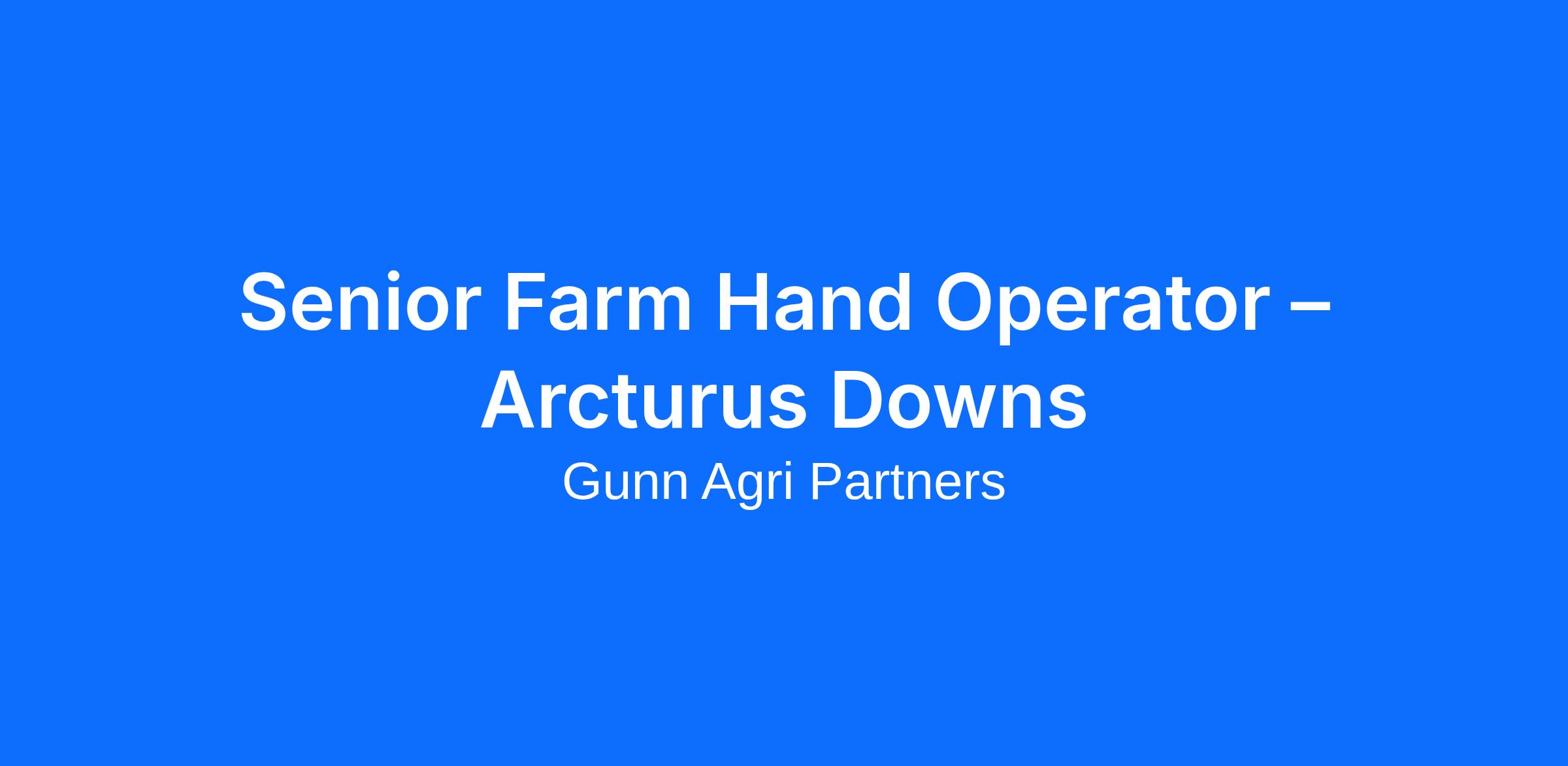 We are seeking a motivated and skilled Senior Farm Hand to join our team at Arcturus Downs, located in the Springsure/Emerald region of Central Queensland.