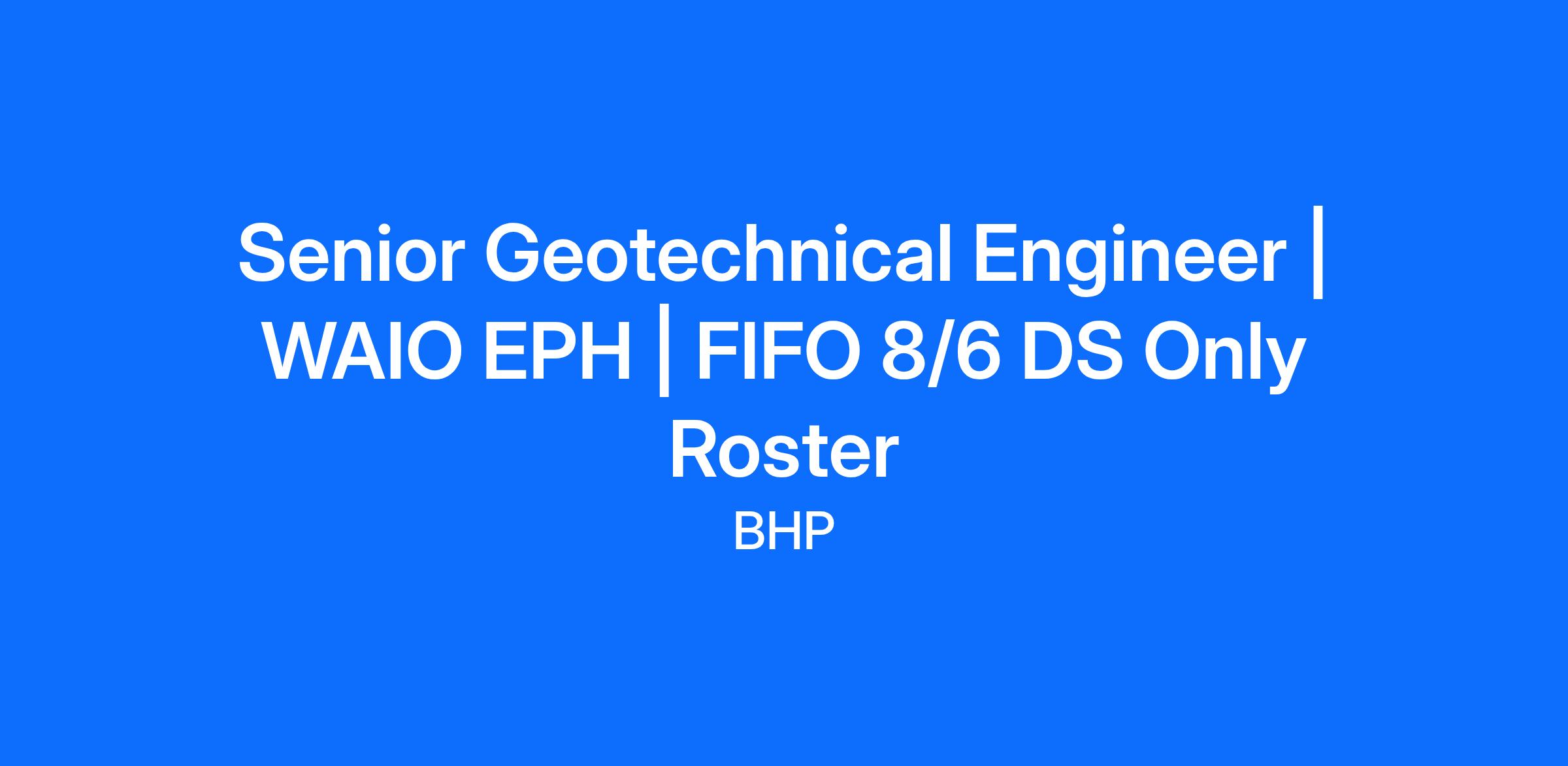 We are seeking a dedicated operations Senior Geotechnical Engineer to play a vital role in our operational teams at one of our Open Cut Mines in the Pilbara. Reporting to the Lead Geotechnical and supported by a central geotechnical engineering group, you will be the single point of contact for geotechnical matters on site over your 8:6 roster with a back to back. Your primary purpose will be to provide essential geotechnical support to ensure the safe and economic extraction of Iron Ore along with driving improvement projects.