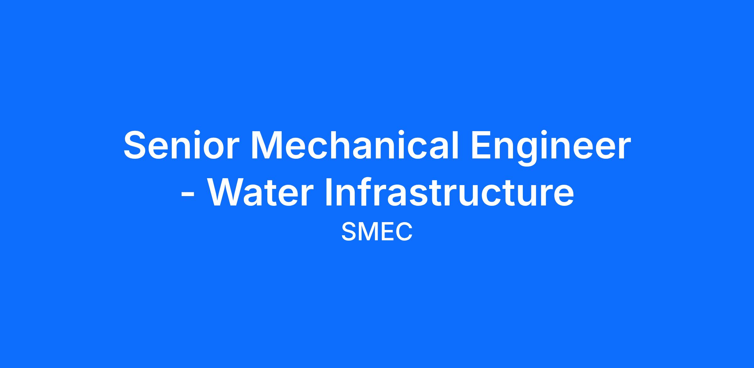 We are currently looking for a Senior Mechanical Engineer – Water Infrastructure to join our Brisbane team. The successful candidate will have a good base of water infrastructure concept/detailed design experience with a passion and willingness to expand your experience and knowledge.
