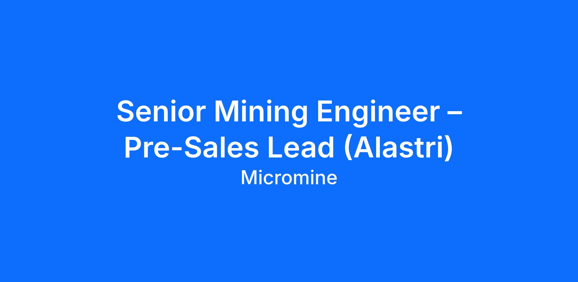 We are seeking a Senior Mining Engineer to play a key hands-on role in technical pre-sales while also leading a small, high-performing team of mining engineers across the APAC region.