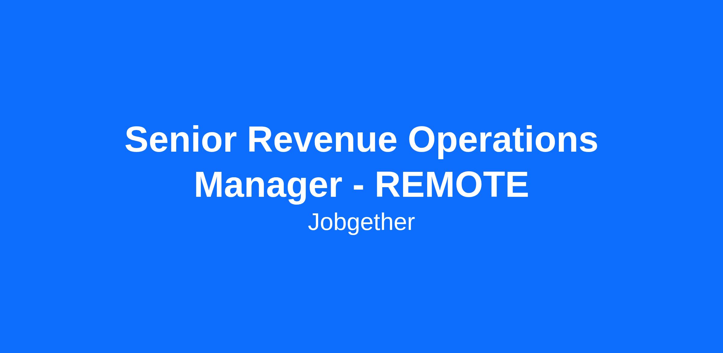 This position is posted by Jobgether on behalf of a partner company. We are currently looking for a Senior Revenue Operations Manager - REMOTE. This role is critical in transforming the healthcare landscape by partnering with sales and account management to optimize commercial processes. The Revenue Operations Manager will play a key role in driving growth strategies and ensuring data-driven decisions are made for the company. By effectively managing workflows and supporting the revenue strategy, this position will significantly impact the overall success of our partner's mission in healthcare.
