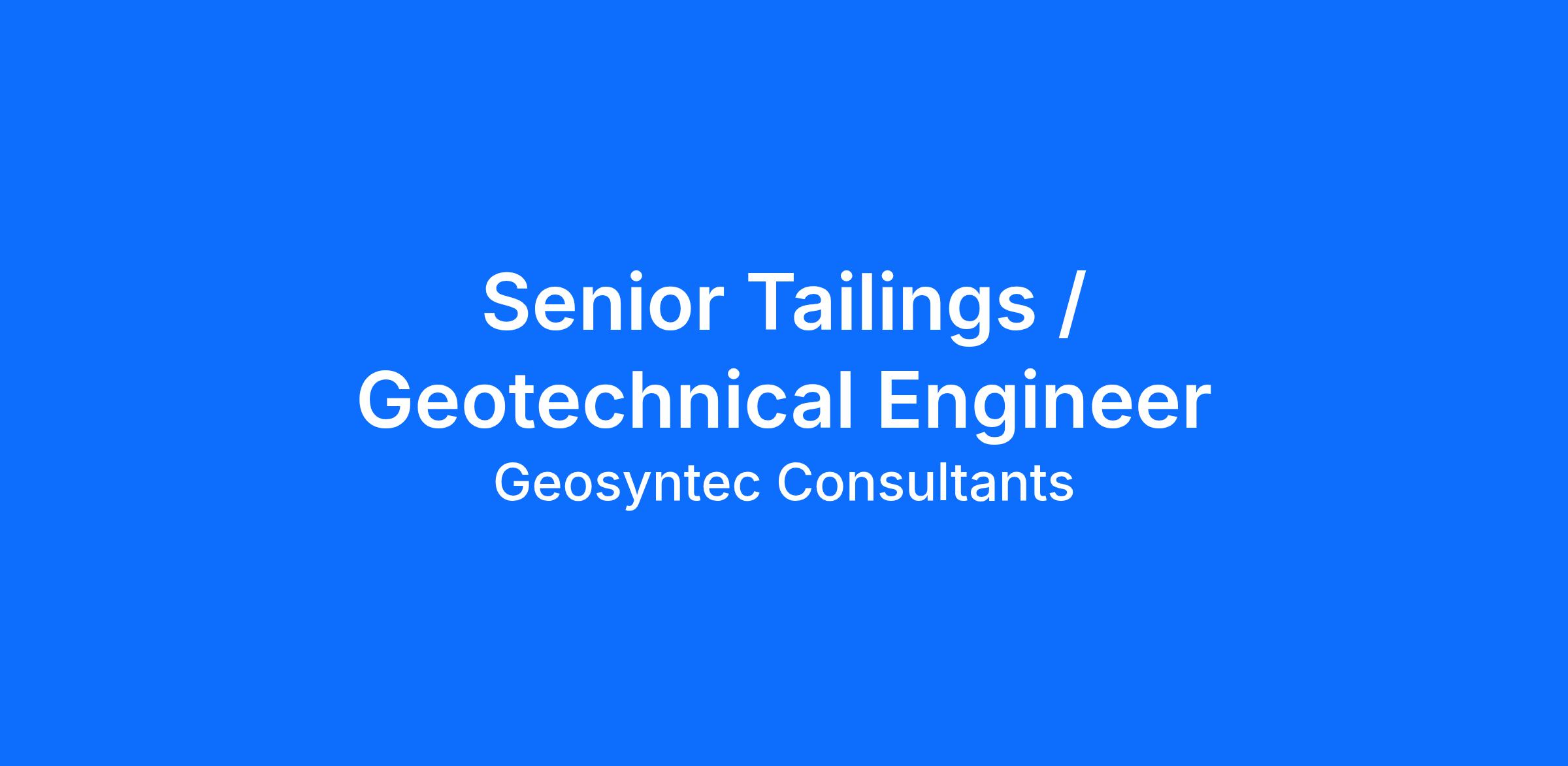 As a Senior - Tailings / Geotechnical Engineer, this role requires the application of the tasks listed below (geotechnical engineer), but also an expanding knowledge of all elements and disciplines required to design these facilities, such as hydrogeology, process, geochemistry, water, civil engineering and social engagement.