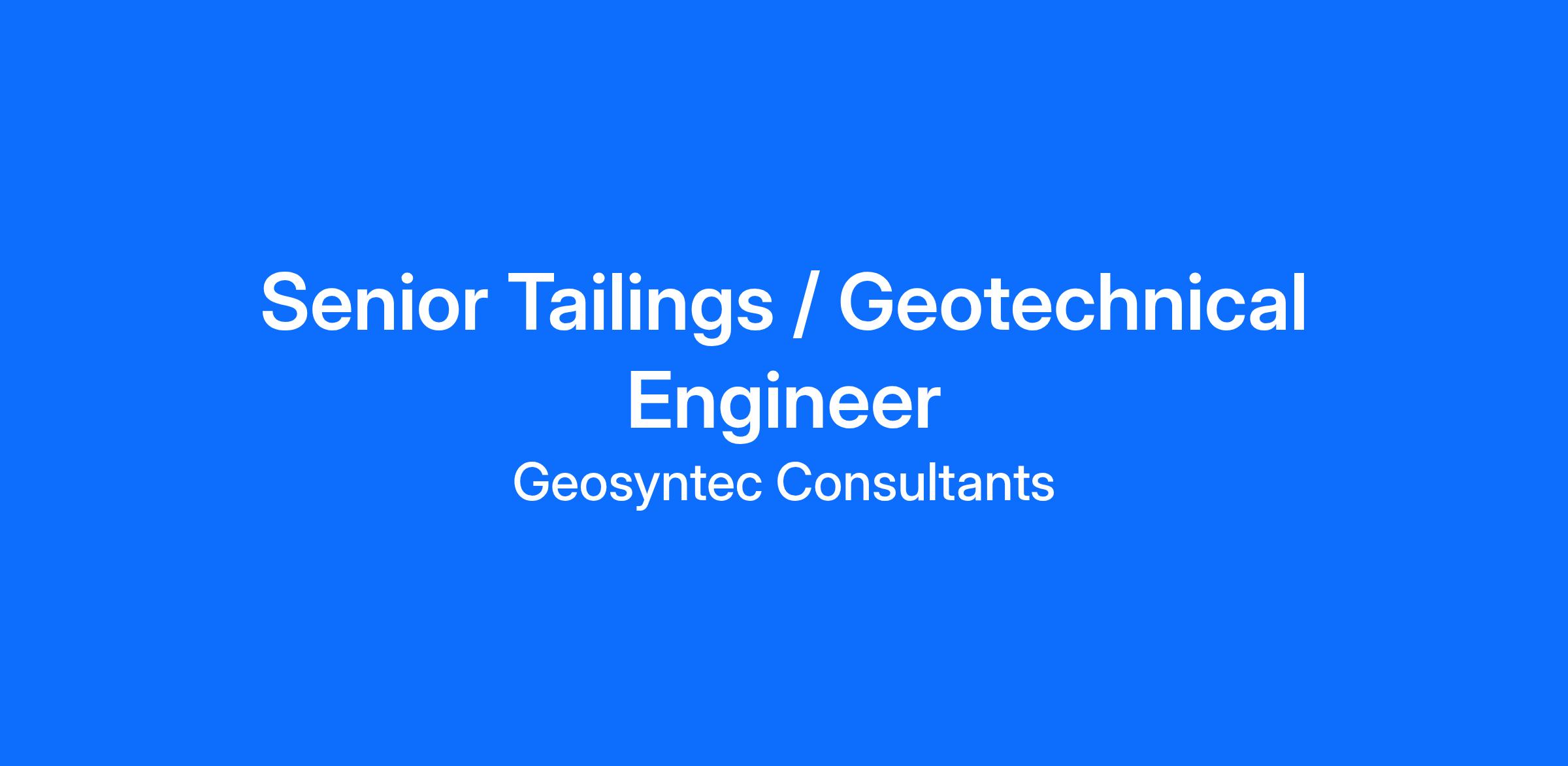 As a Senior - Tailings / Geotechnical Engineer, this role requires the application of the tasks listed below (geotechnical engineer), but also an expanding knowledge of all elements and disciplines required to design these facilities, such as hydrogeology, process, geochemistry, water, civil engineering and social engagement.