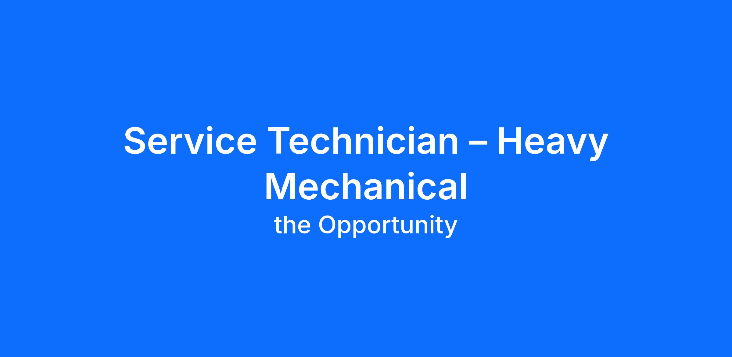 We’re seeking experienced Service Technicians – Heavy Mechanical to join our professional Service Team at our new site.