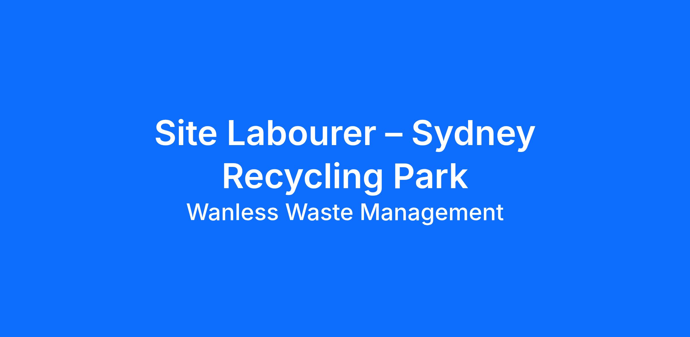 Wanless Waste Management is seeking a reliable and motivated Site Labourer to join our busy Sydney Recycling Park at Kemps Creek.