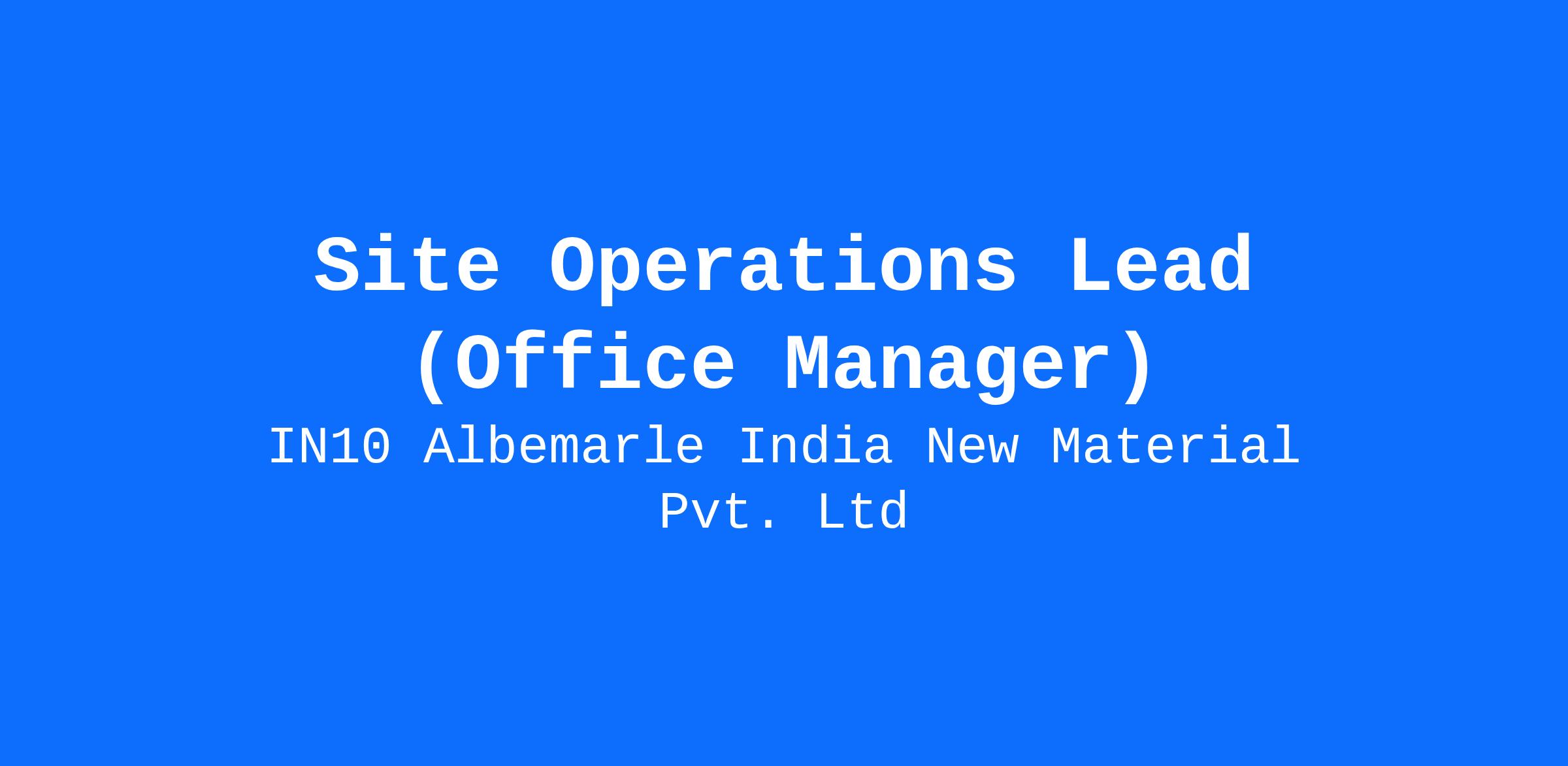 Job Description: Albemarle is hiring “Site Operations Lead” to be part of growing Digital Technology Hub at Bangalore, KA, India.