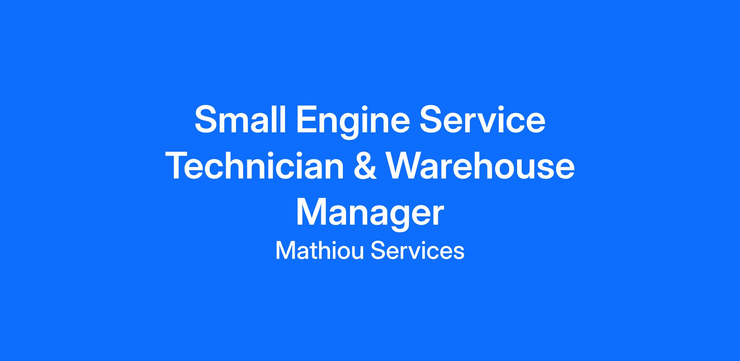 Mathiou Services is seeking a Small Engine Mechanic & Warehouse store person to join our team at our Head office in Burleigh Heads and warehouse in Elanora.