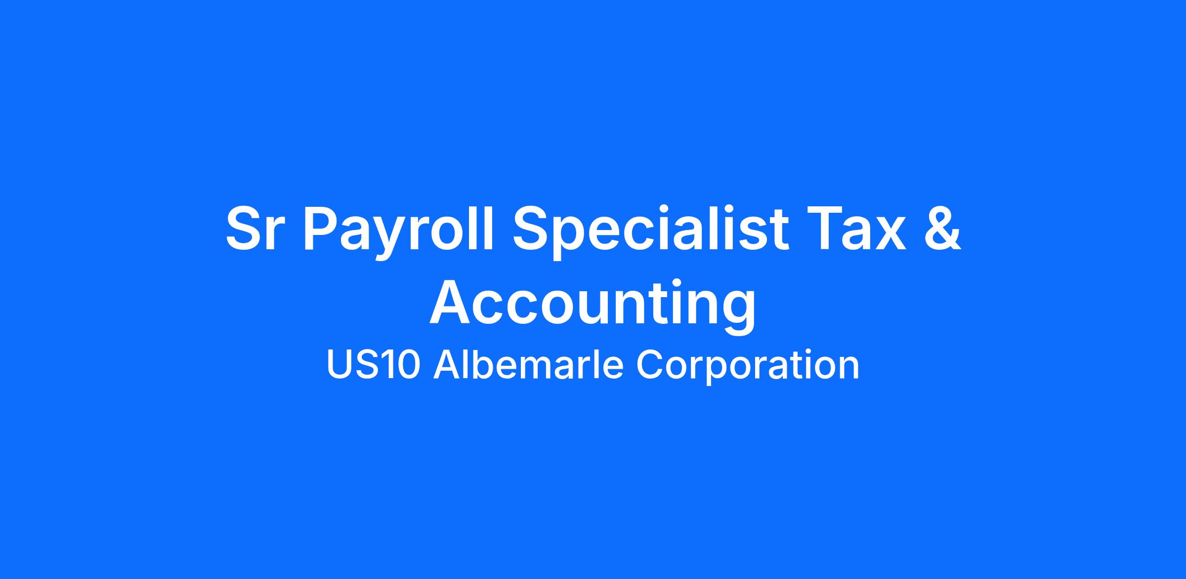 We are seeking a highly skilled and motivated Senior Payroll Tax and Accounting Specialist to join our dynamic Human Resources team. This role is responsible for overseeing and ensuring the smooth execution of US payroll, accounting, tax compliance, and financial reporting processes for payrolls in the United States and internationally. The ideal candidate will possess deep expertise in payroll taxes, accounting, and process optimization, alongside a passion for accuracy and timely payroll operations.