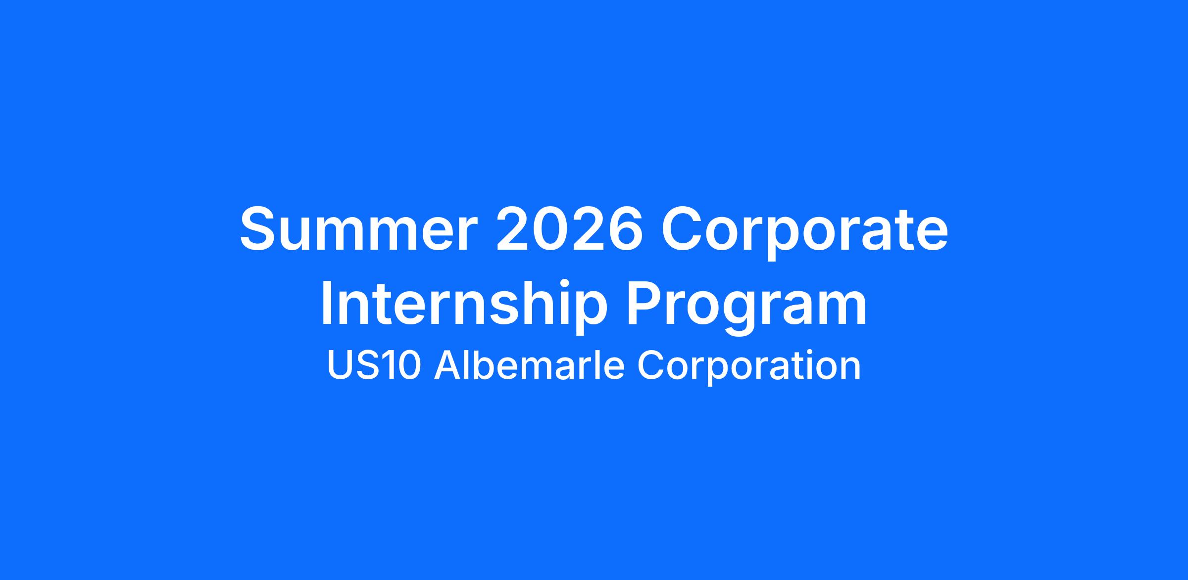 Albemarle is seeking rising sophomores and juniors to join our Summer 2026 Internship Program. The ideal candidate would be available to work full-time for 12 weeks from May 18th - August 7th at any one of our sites.