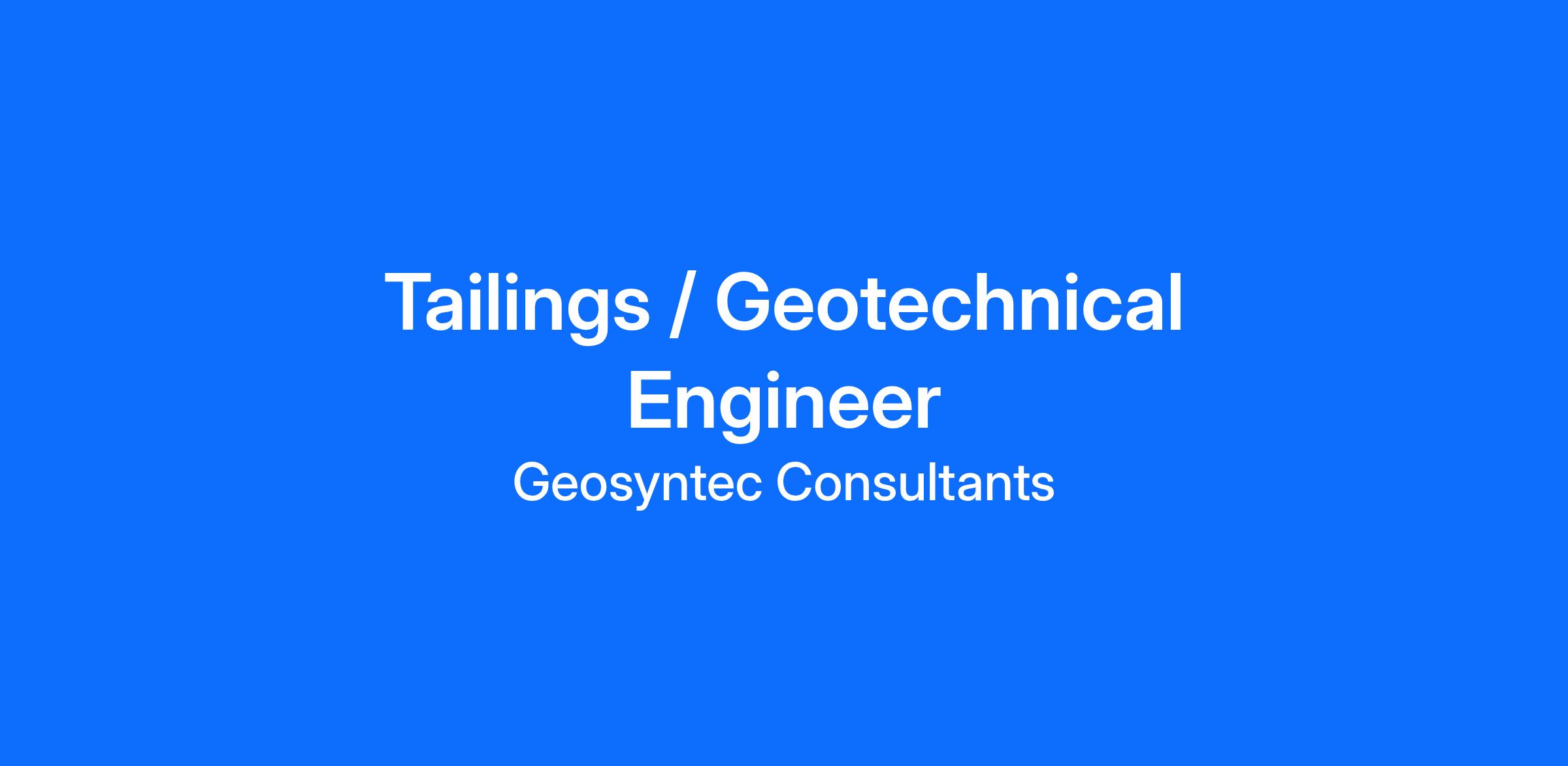 This role focuses on support our client’s tailings and mine waste management and operational teams to ensure their facilities are safe. Compliance to the latest standards (which are evolving) is critical for mining companies to demonstrate their commitment to ESG and for the Social License to Operate. This role forms part of our team to provide the technical and operation support for Tailings Storage Facilities (TSFs) and Water Storage Facilities (WSF). As a Geotechnical Engineer, this role requires the application of the tasks listed below (geotechnical engineer), but also an expanding knowledge of all elements and disciplines required to design these facilities, such as hydrogeology, process, geochemistry, water, civil engineering and social engagement. The expectation of this role is that the candidate will fulfill the role of an Engineer of Record (EoR)