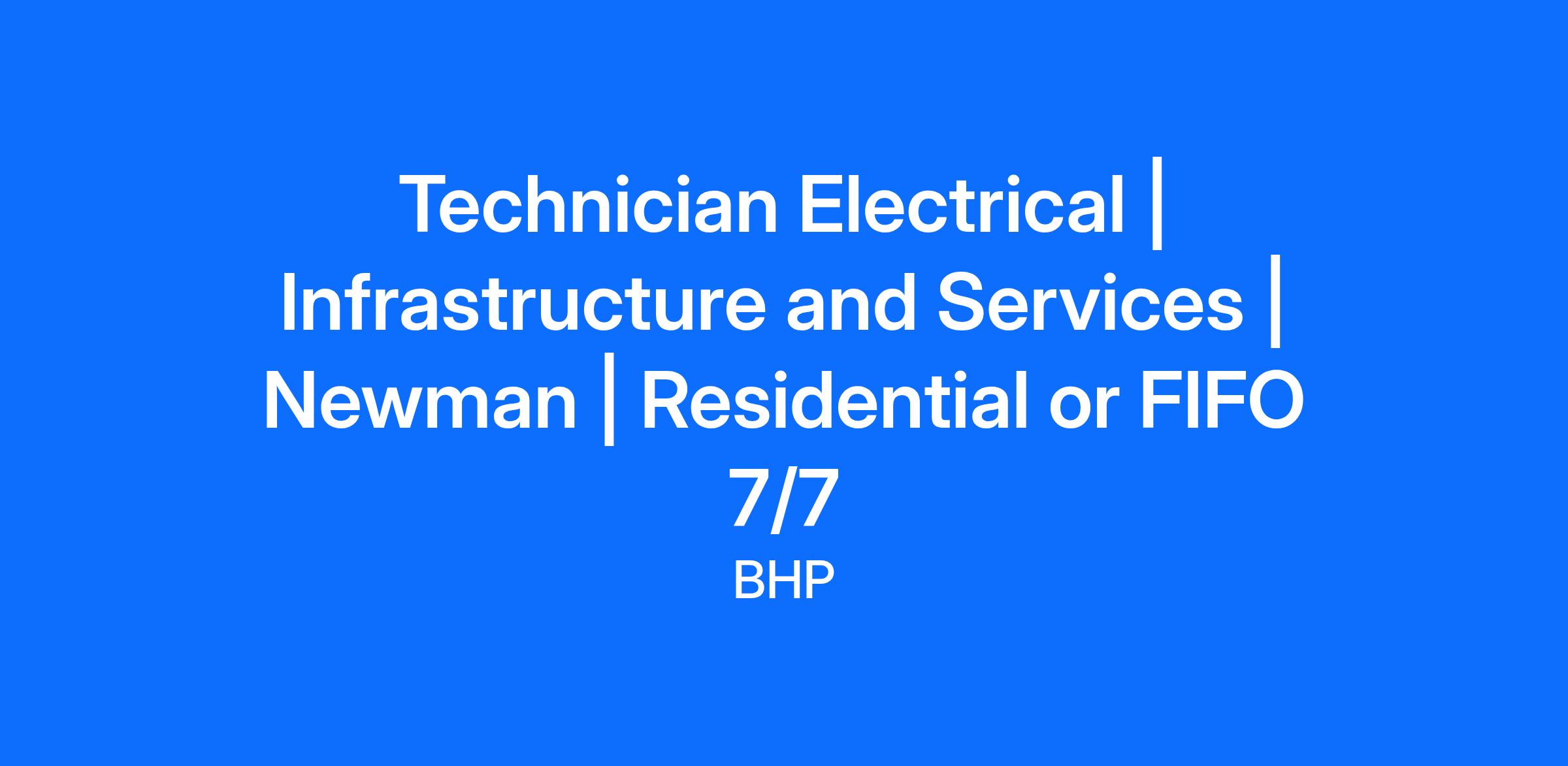 The Engineering Technician Electrical will be responsible for conducting both planned and unplanned maintenance of Drinking (Potable) Water Treatment, Waste Water Treatment and Surplus Water infrastructure in accordance with BHP policies and procedures