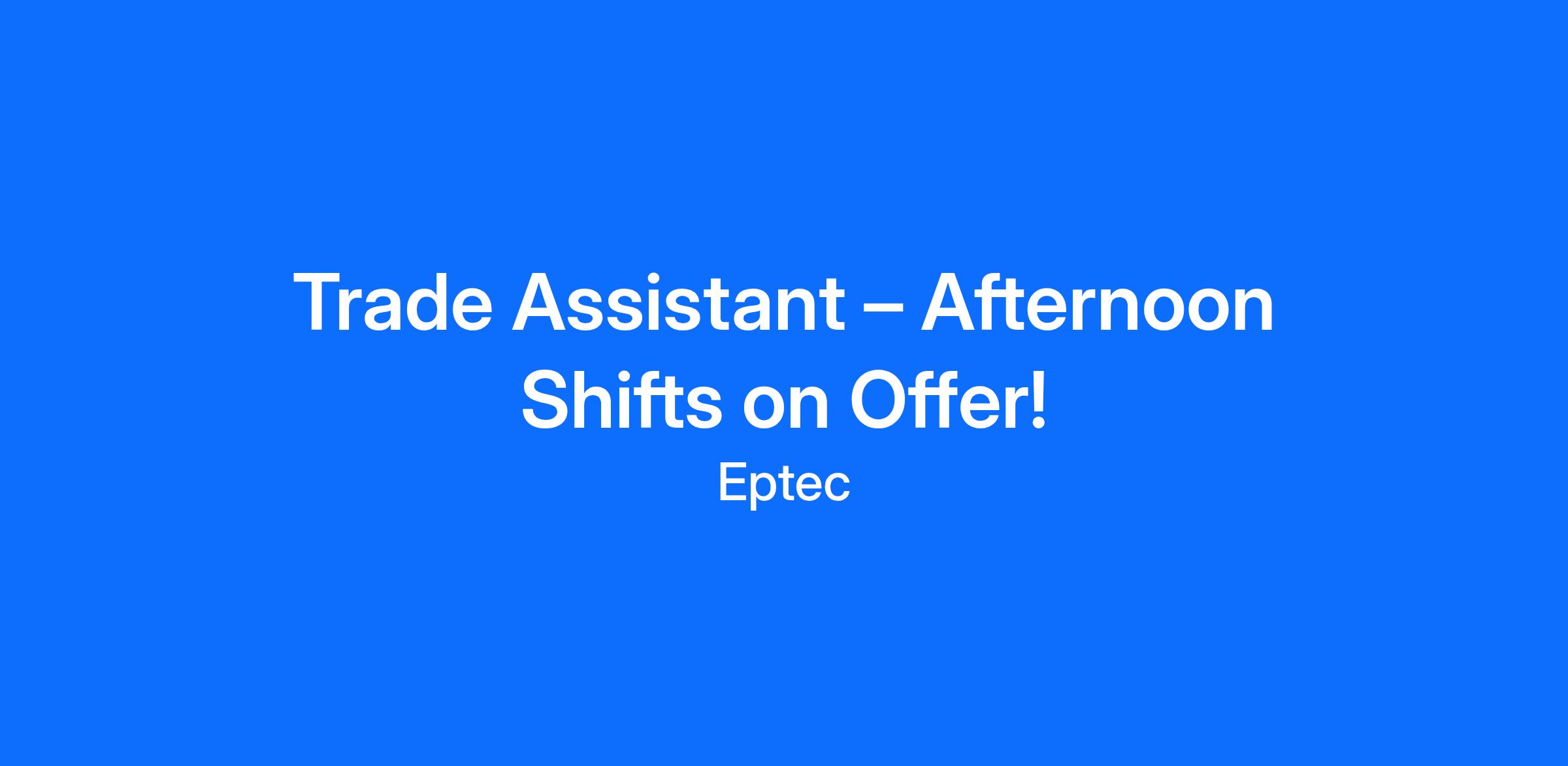We are seeking skilled Trade Assistants to join our growing team, based at Osborne, SA, working afternoon shifts from 3:00pm to 11:30pm.