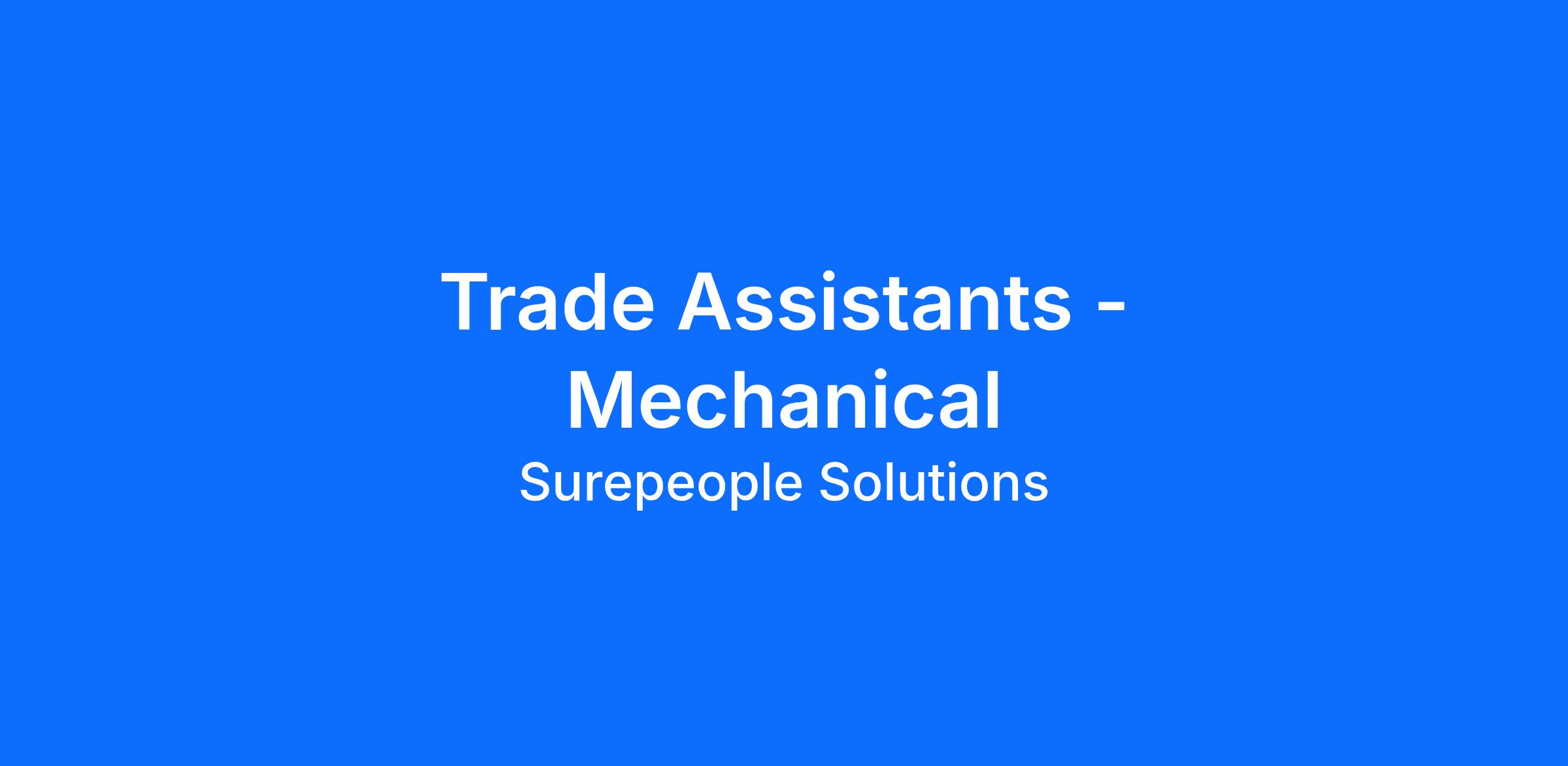 We, Sure People Solutions have an exciting opportunity for Trade Assistants for one of our clients in Jandakot. Our Client offers a constantly evolving range of equipment, tools, services, and technical solutions for rock processing, covering crushing, screening, breaking, and demolition.