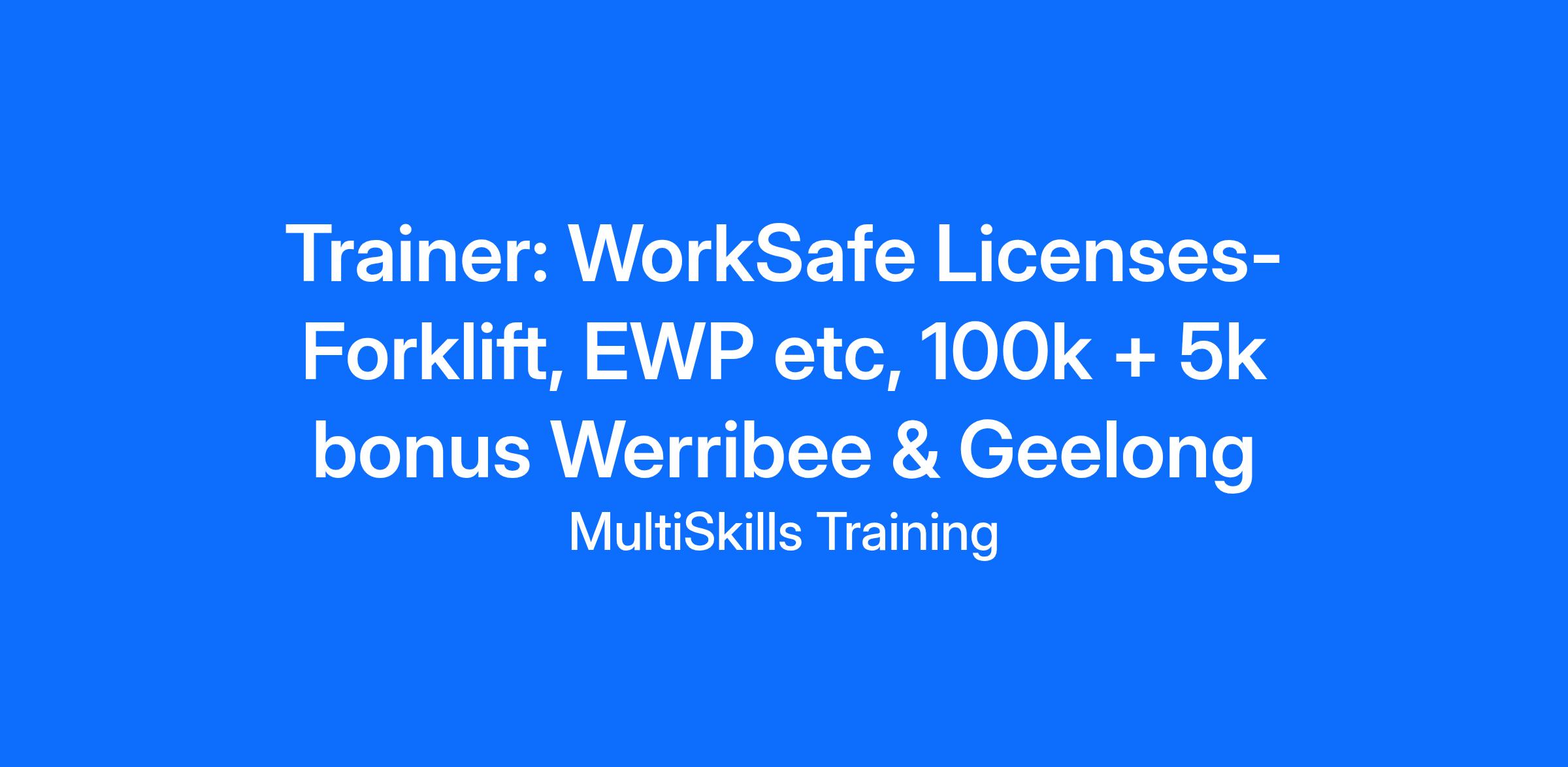 Join the MultiSkills team today on a salary of up to $100k pa + Super +$5k sign-on bonus. Note that this role requires a high degree of mobility, as training can be delivered off-campus at client locations
