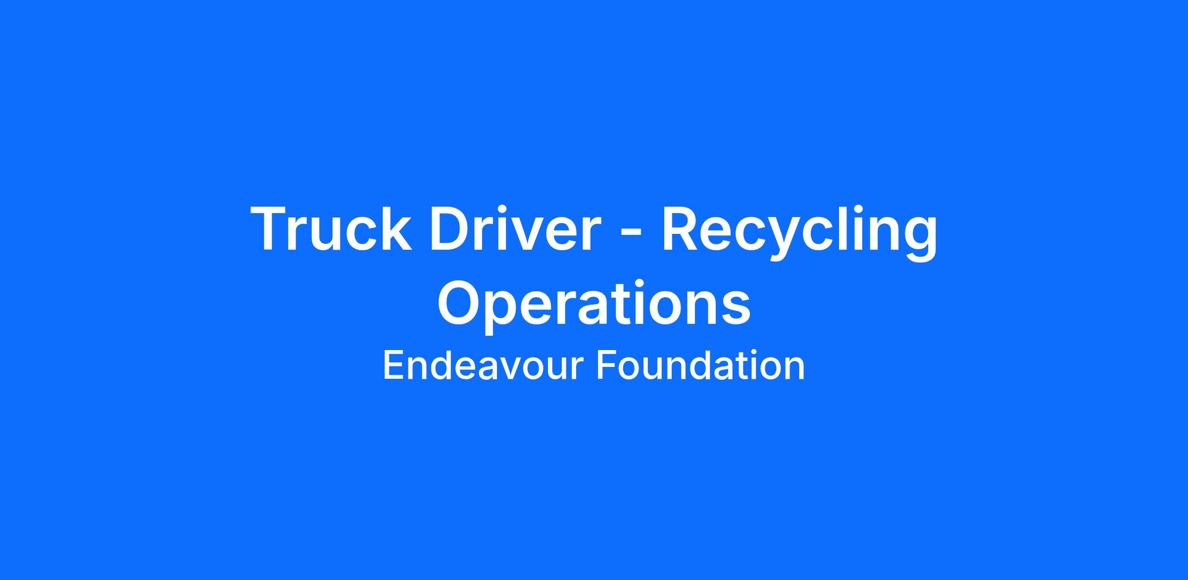 This is a hands-on role that combines truck driving, customer service, and site coordination. You’ll be the face of Endeavour Foundation at our recycling sites, helping customers sort and dispose of materials responsibly.