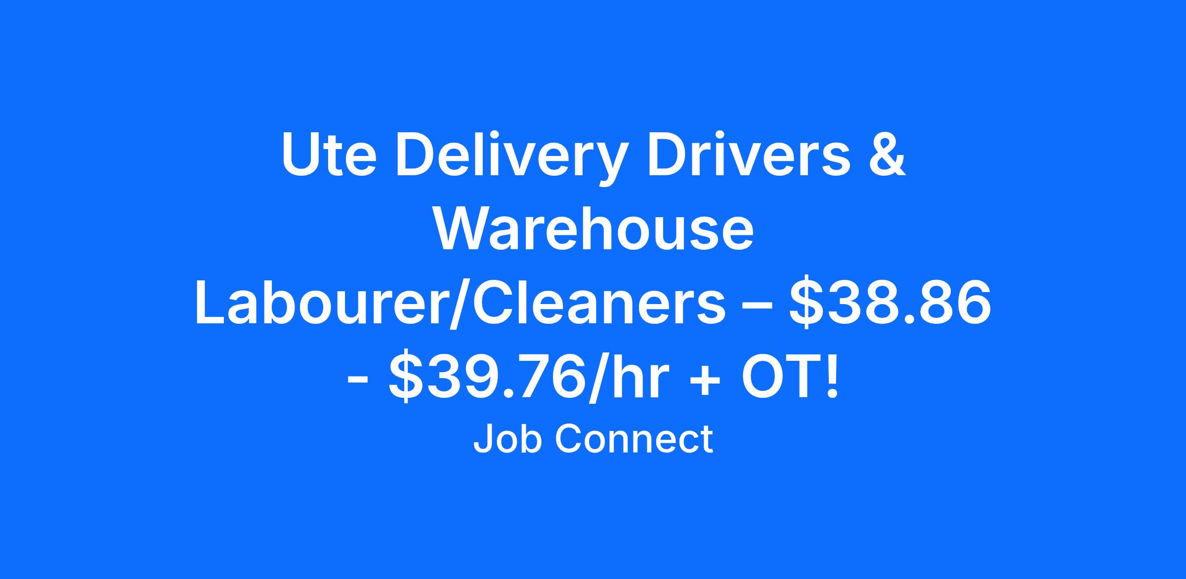 Ute Delivery Drivers & Warehouse Labourer/ Cleaners | Lytton | $38.68 - $39.76/hr