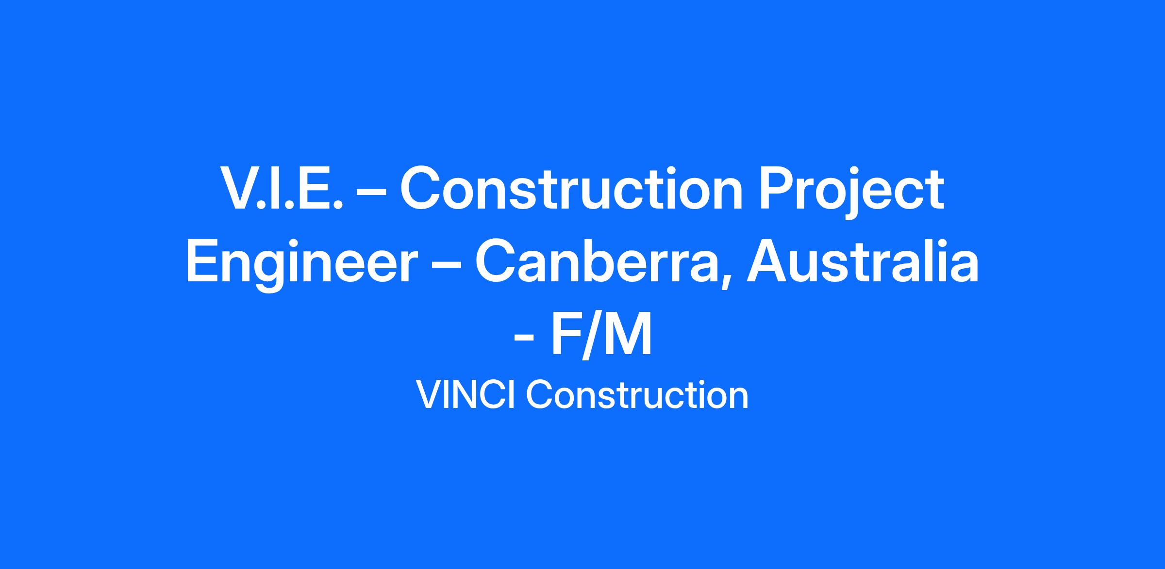 We are looking for a Construction Project Engineer V.I.E. F/M who will be excited to work on different projects in Canberra.