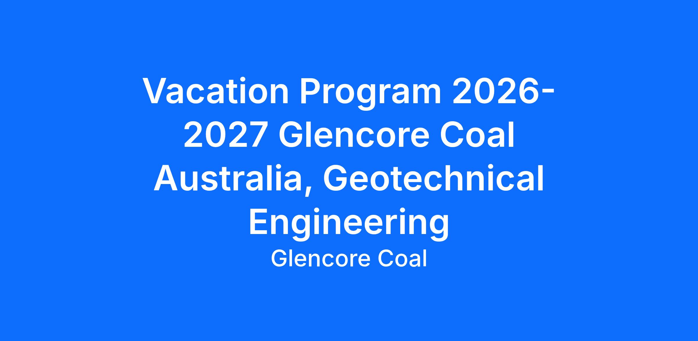 The Glencore Coal Assets Vacation Program will commence onsite on Monday 30th November 2026 and finish on Friday 19th February 2027.