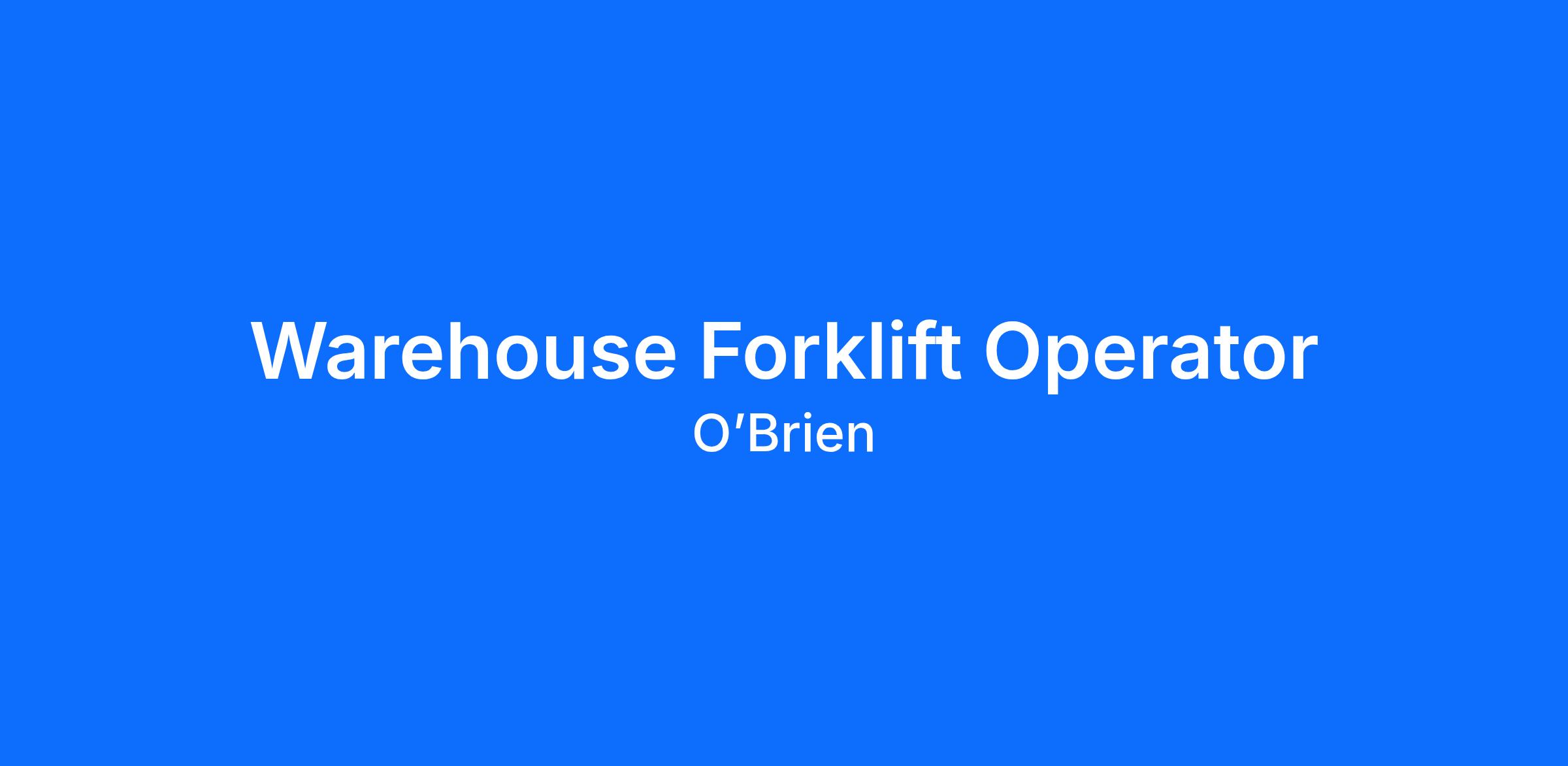 O'Brien are looking for a hands on, reliable and experienced Warehouse / Forklift Operator to join our growing team within our Brisbane Distribution Centre located in Wakerley QLD.