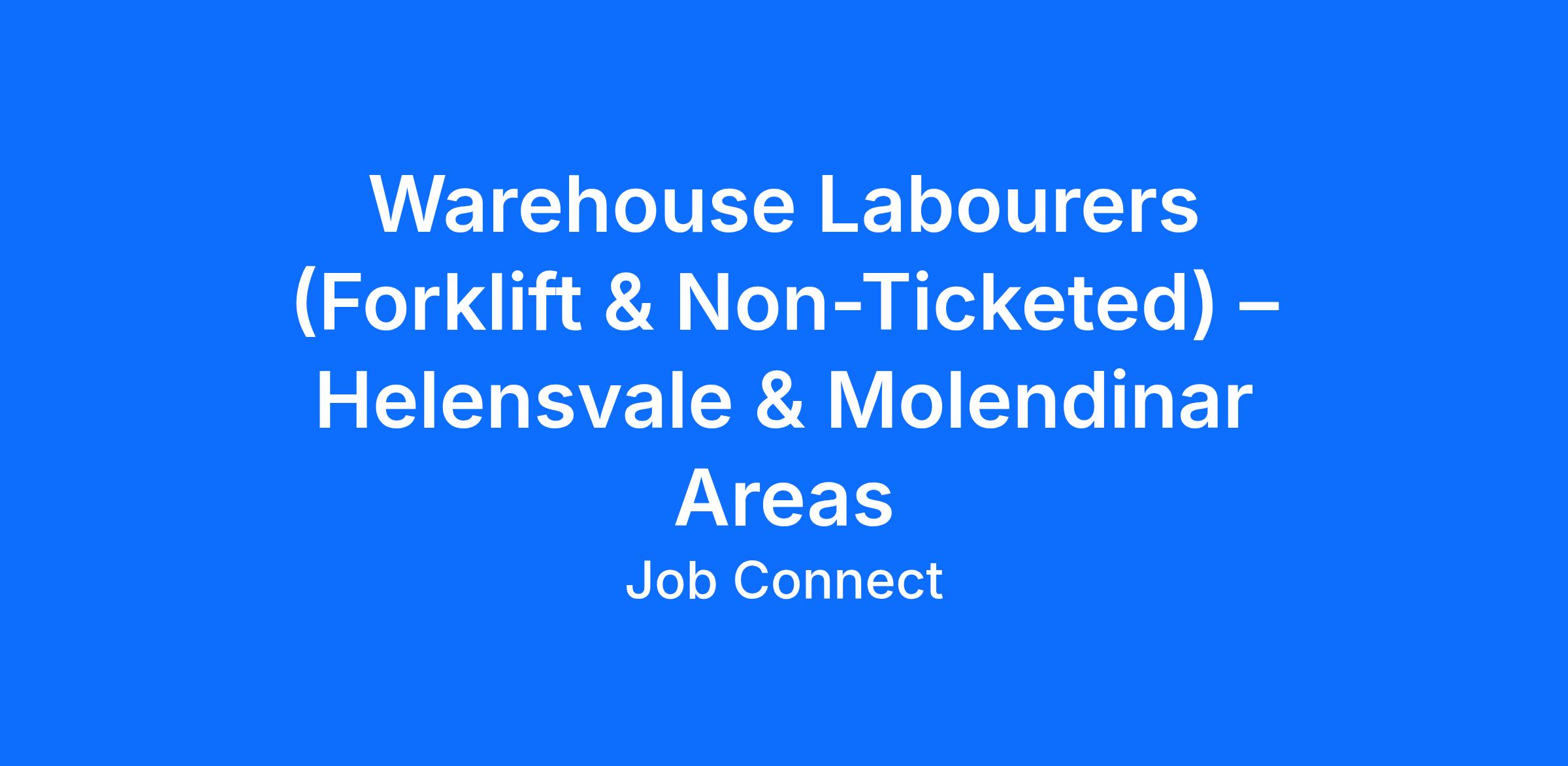 Job Connect is currently seeking Warehouse Labourers, both forklift ticketed and non-ticketed, for immediate starts with clients located in Helensvale and Molendinar.
