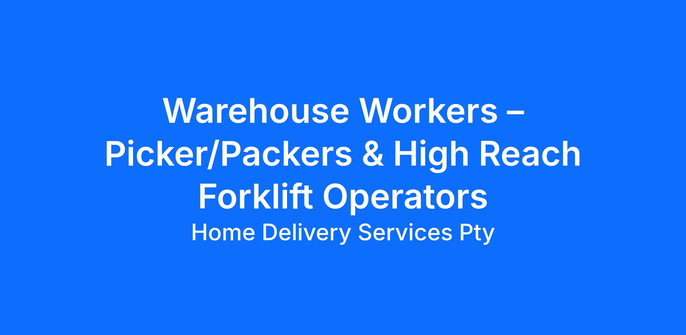 Warehouse Workers – Picker/Packers & High Reach Forklift Operators