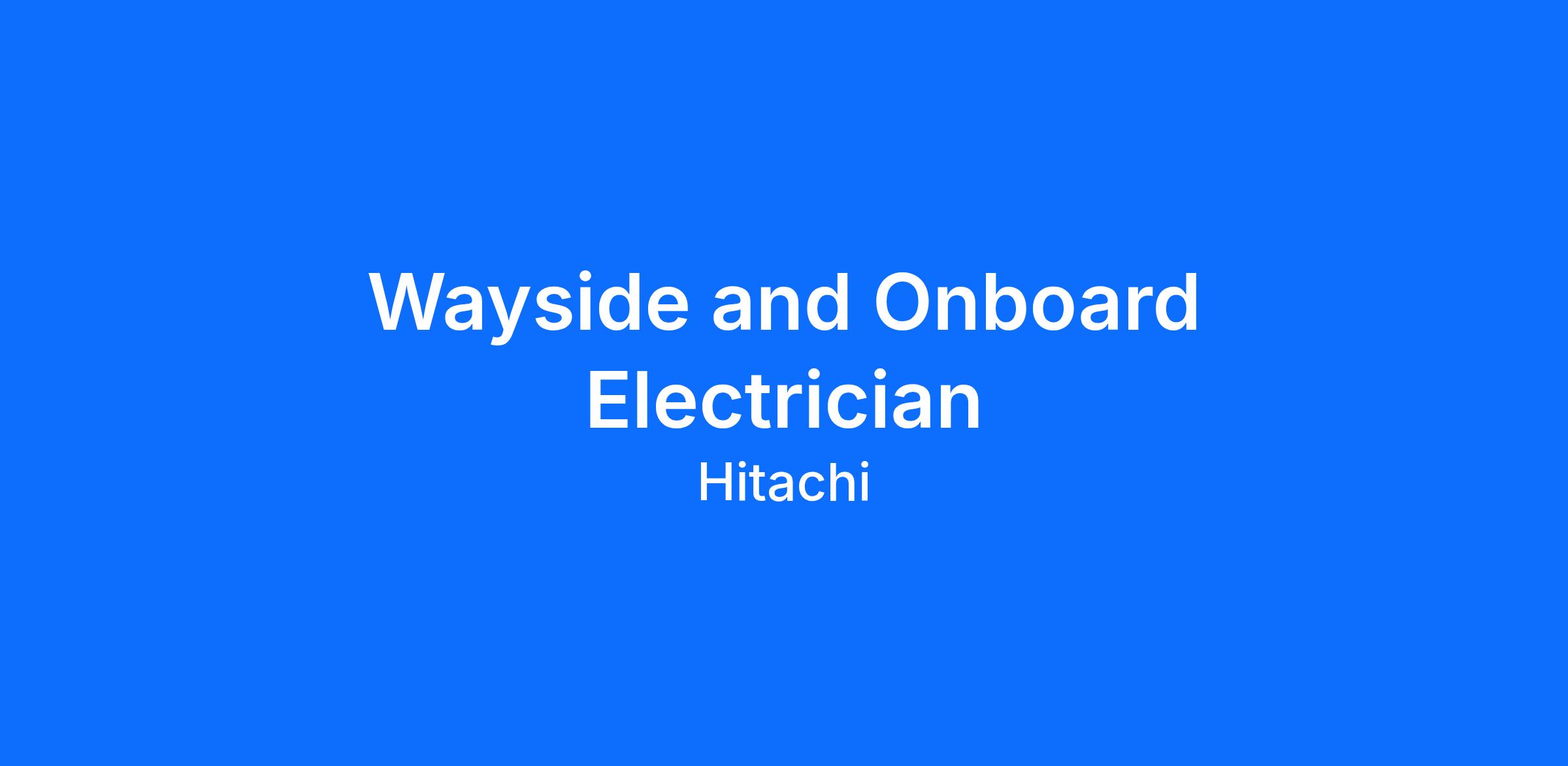 Hitachi Rail is looking for an enthusiastic self-motivated Signal Electrician who thrives in a fast-paced environment. The successful candidate is comfortable performing a wide range of tasks from administrative to strategic.