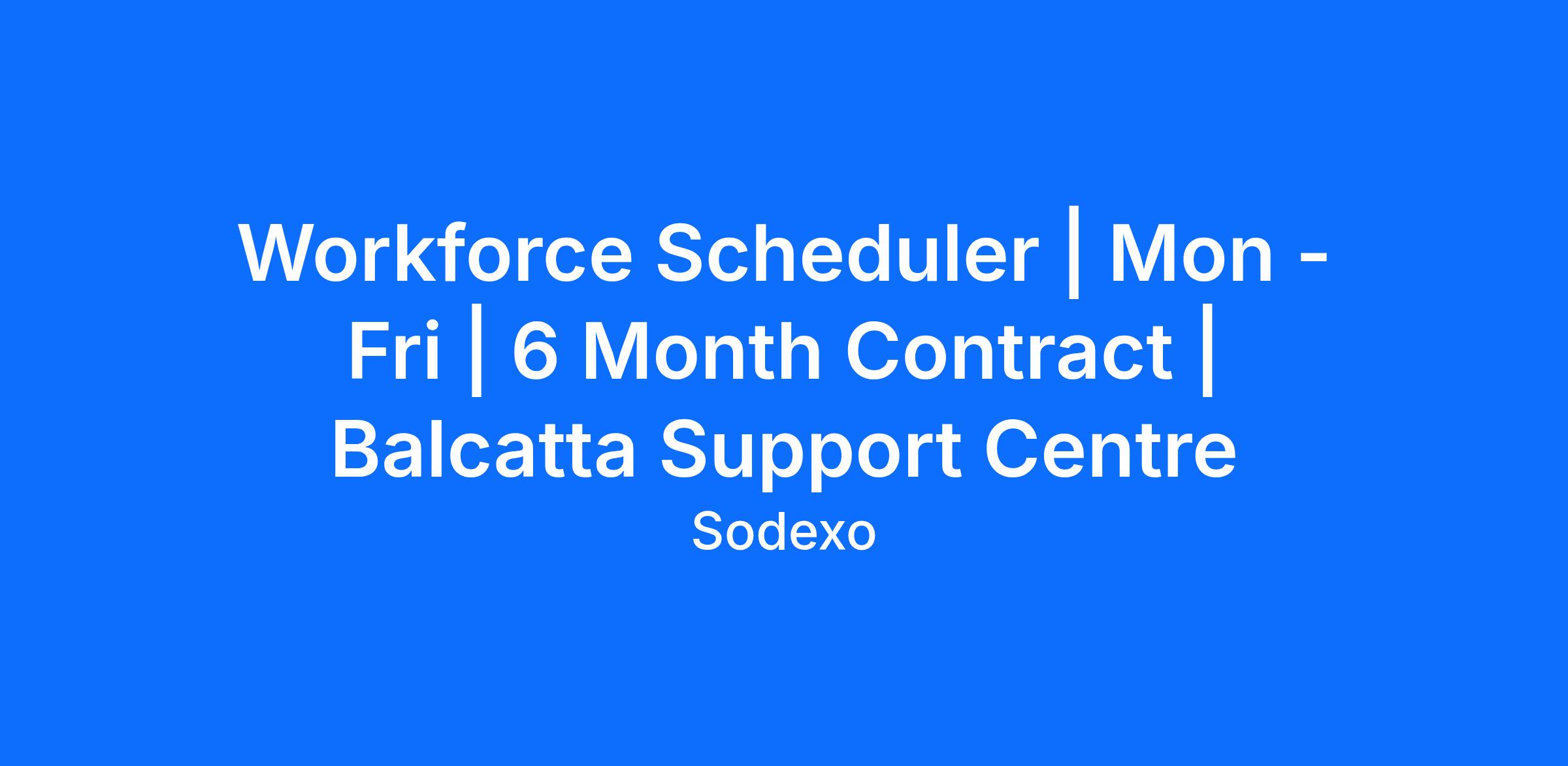 Due to increased growth we’re looking for some Workforce Schedulers to join the Sodexo team.